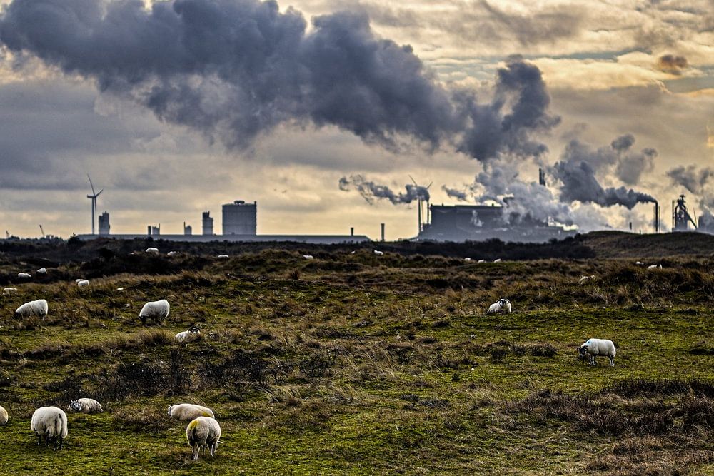 After a nice walk on the beach, I walked back and saw the sheep enjoying nature. With their backs to the industry of Tata. That rugged image in 1 big Picture. Is it under the cloud of neighbourhood by the sea or the smoke of Tata Steel.