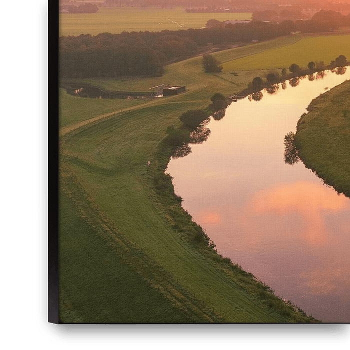 Buy this landscape artwork Vecht river sunrise seen from above during autumn in Overijssel by Sjoerd van der Wal Photography on canvas, ArtFrame, poster and wallpaper, printed on demand in high quality.