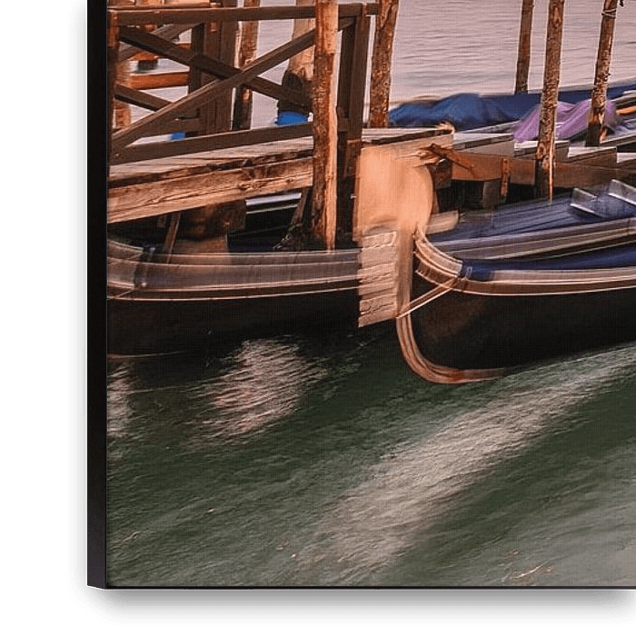 Buy the photo Venice gondolas in the evening light by Kurt Krause on canvas, ArtFrame, poster and wallpaper, printed on demand in high quality.