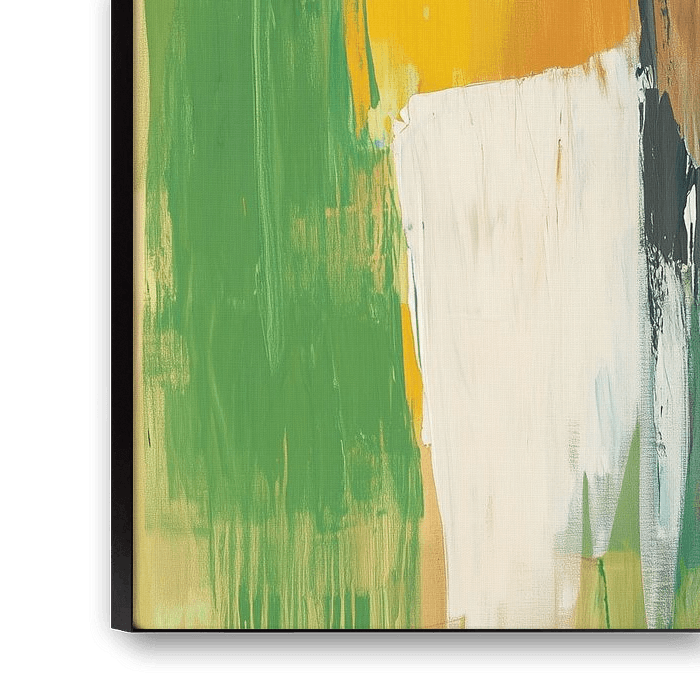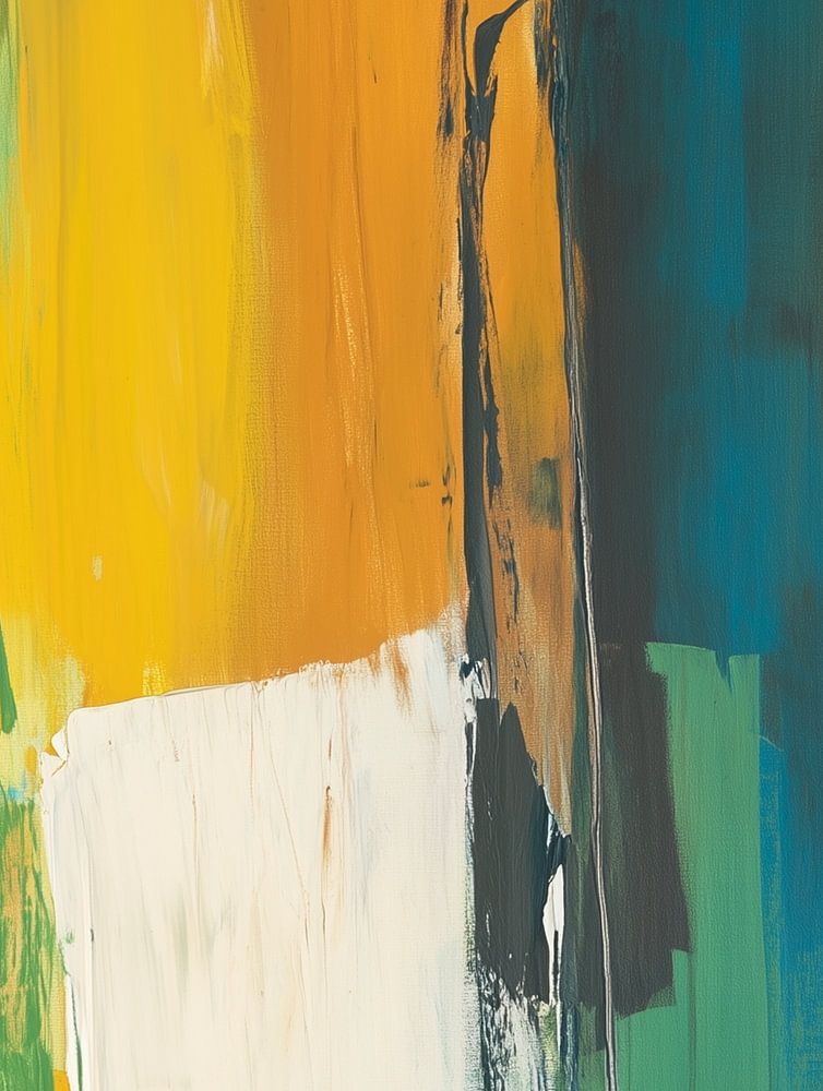 This abstract painting impresses with its simple vertical lines in a colour palette of green, yellow and white. The thick brushstrokes add texture and depth to the composition, while the bold colours create an energetic atmosphere. This work is perfect for minimalist spaces that need to be enlivened by colour and texture.