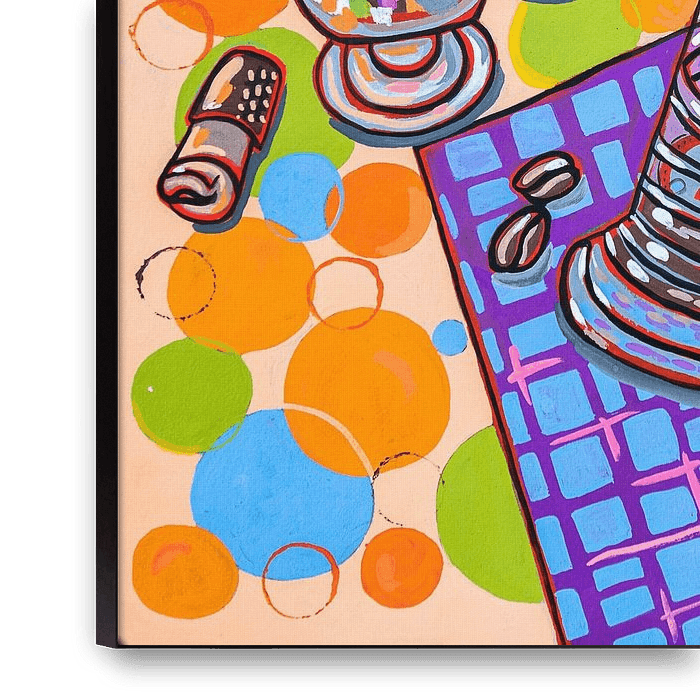Buy this abstract artwork Vibrant Coffee Table Scene by Ariadna de Raadt-Goldberg on canvas, ArtFrame, poster and wallpaper, printed on demand in high quality.