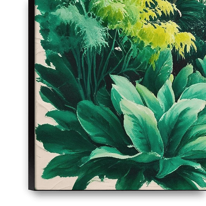 This beautiful watercolour depicts a serene, lush garden full of greenery. Different types of plants and leaves are expertly depicted, with shades of fresh green and accent purple flowers brightening the scene. The painting exudes tranquillity and beauty and would make an ideal decoration for nature lovers. Perfect for the home to bring…