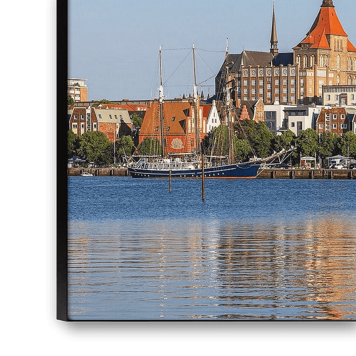 Buy the photo View across the Warnow to the Hanseatic city of Rostock by Rico Ködder on canvas, ArtFrame, poster and wallpaper, printed on demand in high quality.