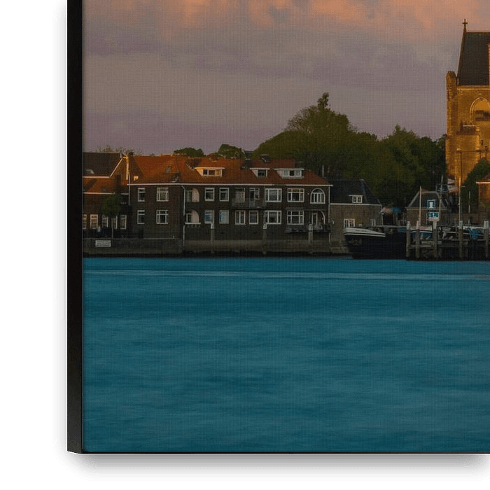 View Dordrecht on the Grote Kerk from Zwijndrecht during the golden hour