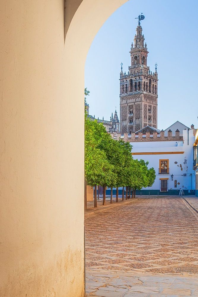 About "View of La Giralda tower framed by an arch. Seville, Spain"