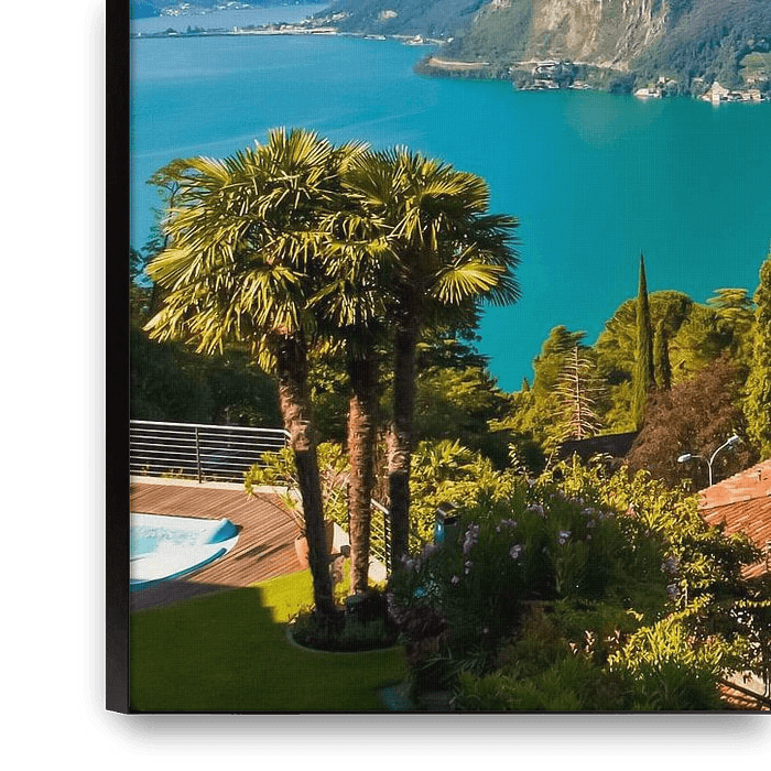 Buy this landscape artwork View of Lugano and Lake Lugano in Switzerland by Werner Dieterich on canvas, ArtFrame, poster and wallpaper, printed on demand in high quality.