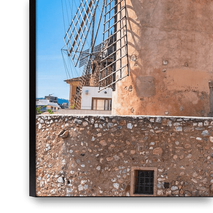 Buy the photo View of historic windmill in the city of Palma de Mallorca, Spain by Alex Winter on canvas, ArtFrame, poster and wallpaper, printed on demand in high quality.