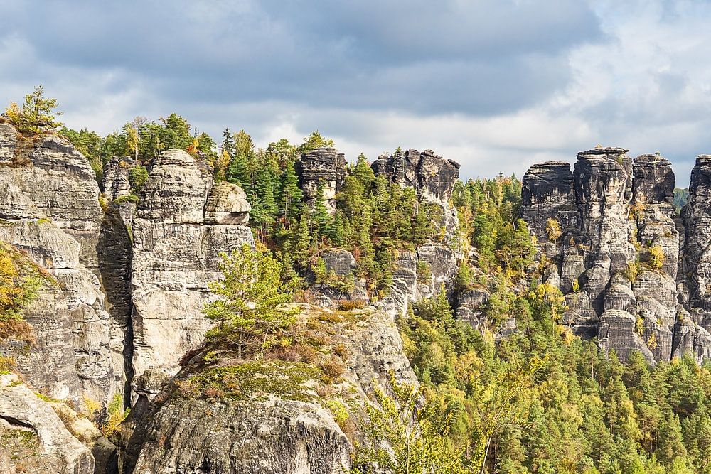 View of rocks and trees in Saxon Switzerland by Rico Ködder