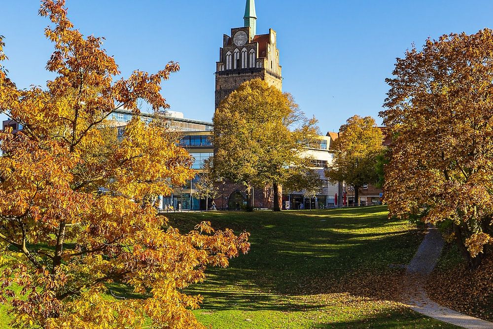 View of the Kröpeliner Tor in the Hanseatic city of Rostock in autumn.