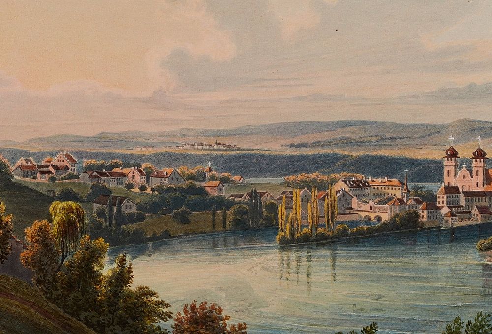 Vue du Couvent de Rheinau, Canton de Zurich, Johann Ludwig Bleuler Johann Ludwig Bleuler, sometimes called Louis was a Swiss painter, landscape artist and publisher.