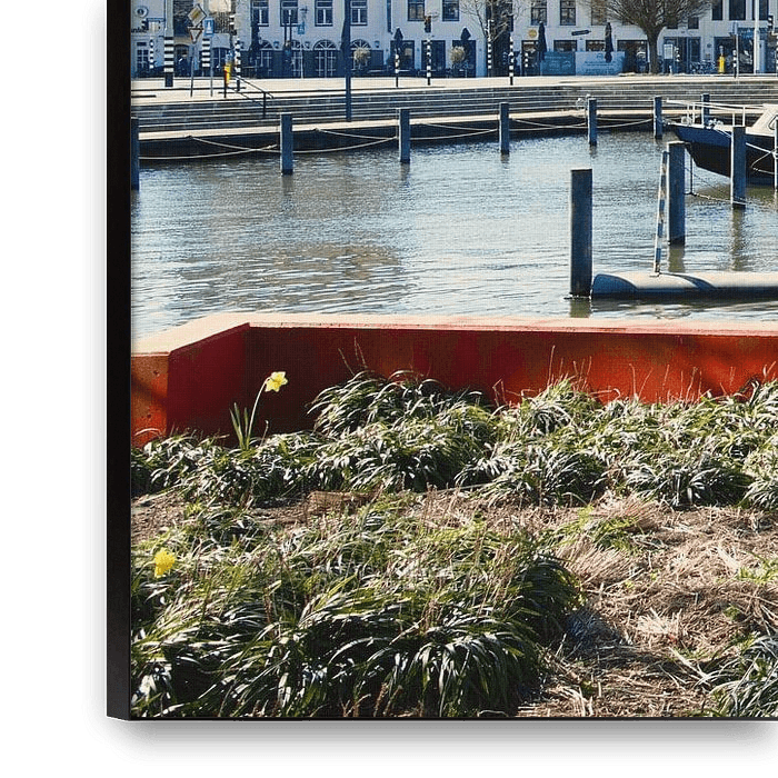 Buy this landscape artwork View of the Zuid-Willemsvaart from the harbour in Weert by Jolanda de Jong-Jansen on canvas, ArtFrame, poster and wallpaper, printed on demand in high quality.