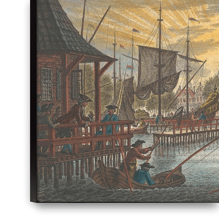 Buy View of the old marina in Amsterdam, seen towards the stronghold Leeuwenburg or Blauwhoofd, Pierre F as a reproduction on canvas, ArtFrame, poster and wallpaper, printed on demand in high quality.