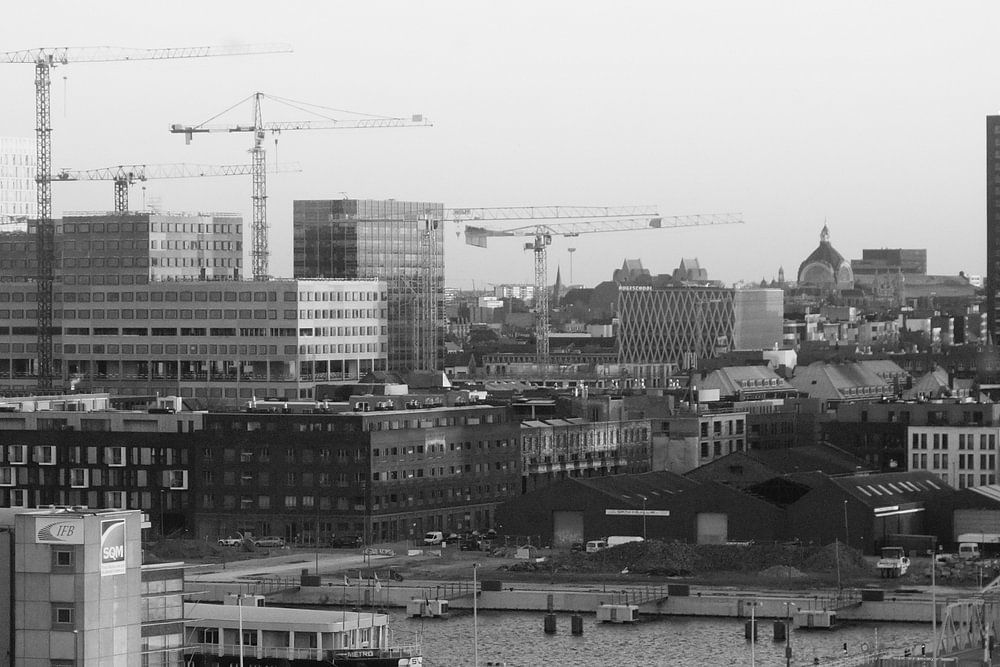 Vista on Antwerp from the port house of Antwerp (Havenhuis).