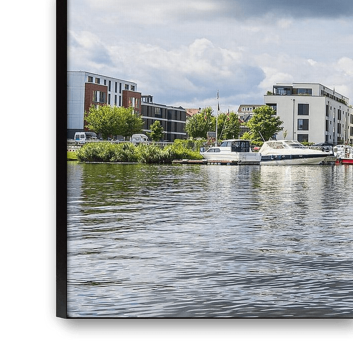 Buy the photo View over the Warnow river to the Hanseatic city of Rostock by Rico Ködder on canvas, ArtFrame, poster and wallpaper, printed on demand in high quality.