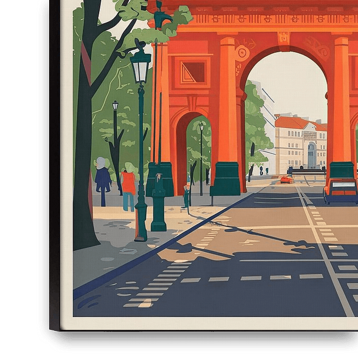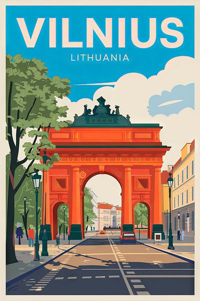 A radiant gateway blossoms in vibrant red, embodying the splendour of Vilnius. Surrounded by gentle trees and a clear sky, it radiates an inviting atmosphere. Historic architecture meets vibrant colours and conveys the feeling of immersing oneself in a fascinating past while urban life pulsates.
