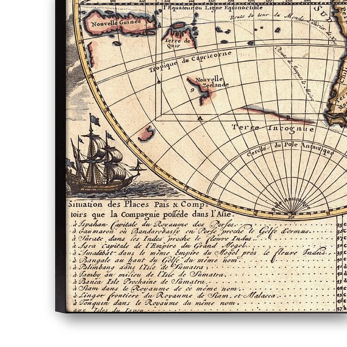 Buy this illustration Vintage World Map anno 1728 by Emma Kersbergen on canvas, ArtFrame, poster and wallpaper, printed on demand in high quality.