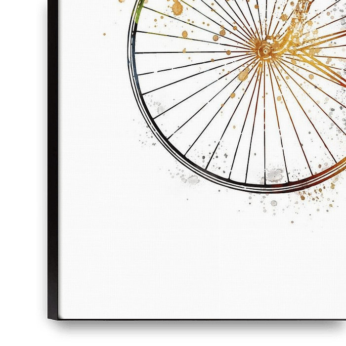 This is a digitally reworked old illustration of a vintage bicycle. With the rainbow colours and splashes it taps into the joy of cycling and would make a great decoration in the home or office of any avid cyclist.