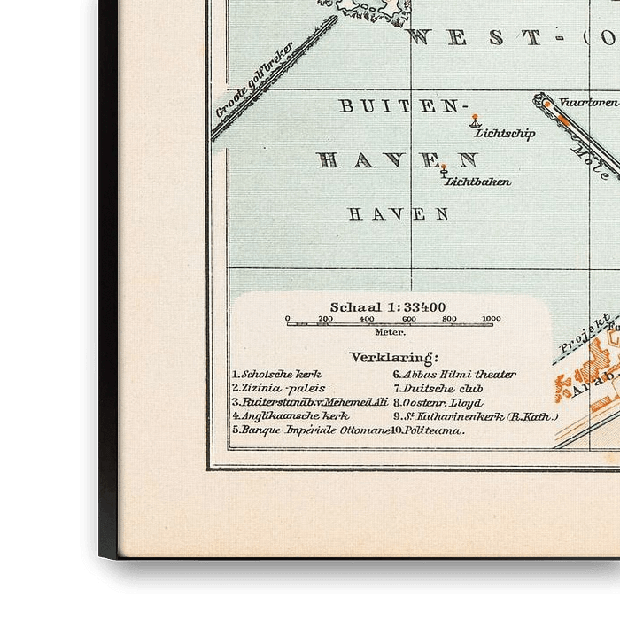 This antique map from around 1900 shows a map of the city of Alexandria. This city map is in colour.