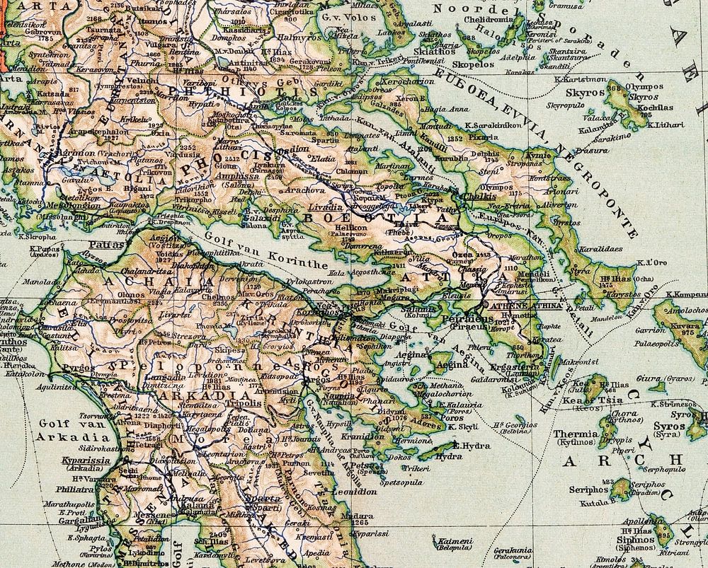 Buy this illustration Vintage map Greece by Studio Wunderkammer on canvas, ArtFrame, poster and wallpaper, printed on demand in high quality.