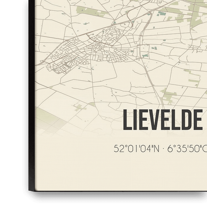Buy this digital art artwork Vintage map of Lievelde (Gelderland) by Prints of Place as a reproduction on canvas, ArtFrame, poster and wallpaper, printed on demand in high quality.