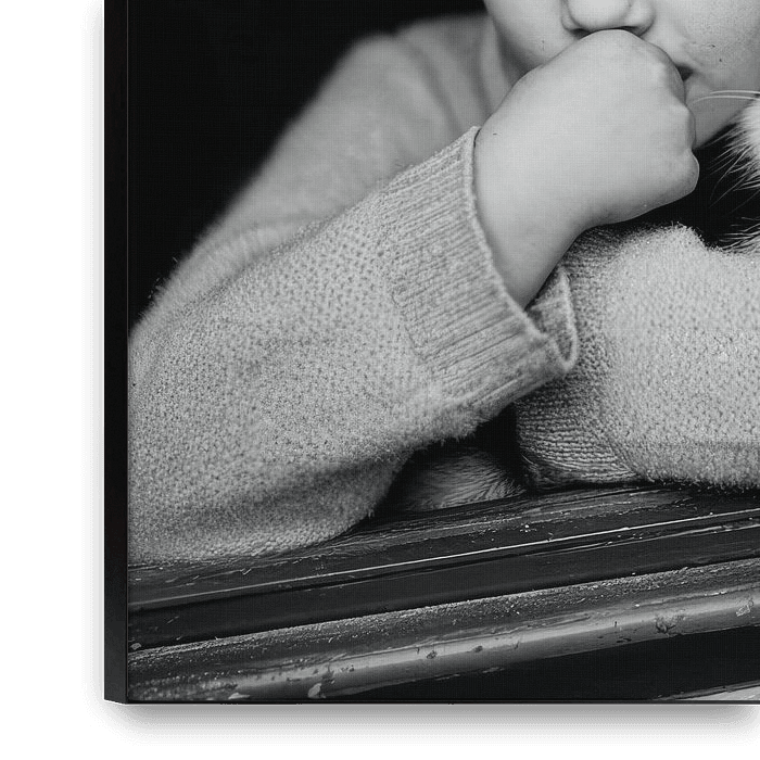 This atmospheric black-and-white portrait brings a sense of tranquillity, tenderness and timeless beauty into your home. The girl and the cat together form an intimate and moving image that immediately evokes emotion. The gentle gaze, the relaxed posture and the quiet contact between human and animal make this work of art particularly…