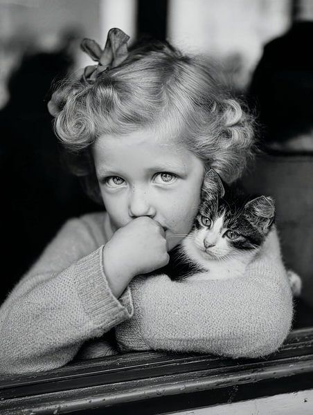 Buy the photo Vintage portrait of a girl with her cat by Studio Allee on canvas, ArtFrame, poster and wallpaper, printed on demand in high quality.