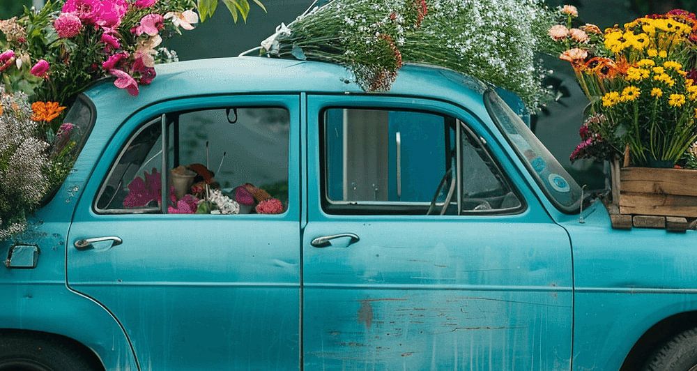 This beautiful work depicts an enchanting scene of a vintage vintage car, richly decorated with an abundance of colourful flowers. The car, with its classic lines and nostalgic charm, is a perfect representation of timeless elegance. Filled with a sea of flowers in soft pastel colours, this photo print brings a sense of joy and freshness to any space. The colours, ranging from soft pink to pale blue and soft yellow, create a calm and serene atmosphere that is perfect for a summer vibe. It's like stepping back in time to a carefree summer day, where everything seems possible and the air is filled with the scent of blooming flowers.