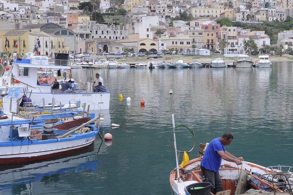 Zicht op de haven in Castellammare del Golfo in Sicilië.