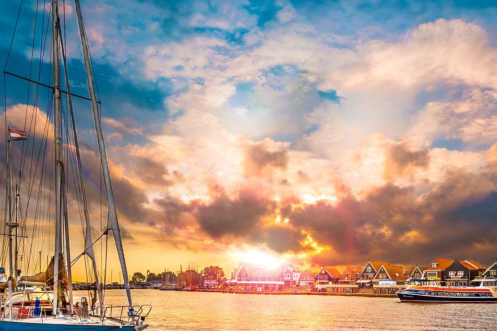 Volendam at its most beautiful, overlooking the fishing port and the typical Dutch sky.