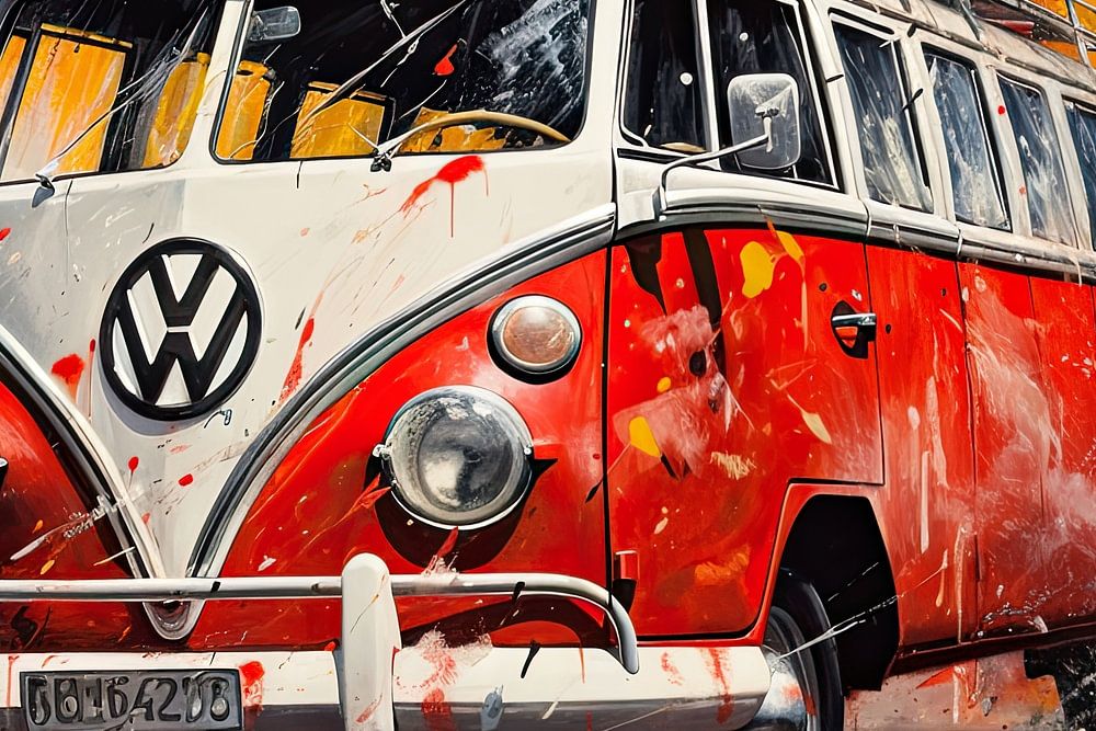 Buy this digital art artwork Volkswagen T1 van by Imagine as a reproduction on canvas, ArtFrame, poster and wallpaper, printed on demand in high quality.