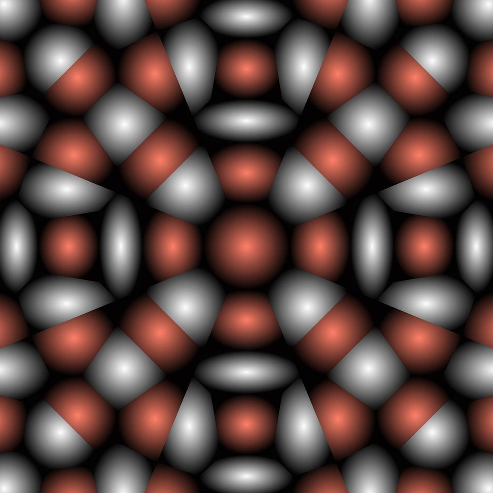 This work was made entirely with the computer. First, I created a vector representation of a so-called Voronoi diagram via an algorithm. The points or 'generators' in this case are not randomly distributed, but placed in a symmetrical pattern, so that the cells also get a symmetrical distribution. By also giving the cells a color gradient, an intriguing effect is created; as if you were looking into a special kaleidoscope!
