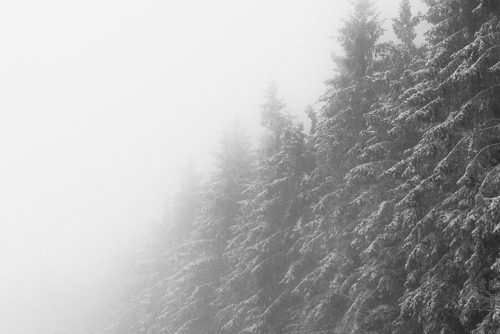'WINTER', trees in the fog. Black-and-white photography. by Femke den Hollander