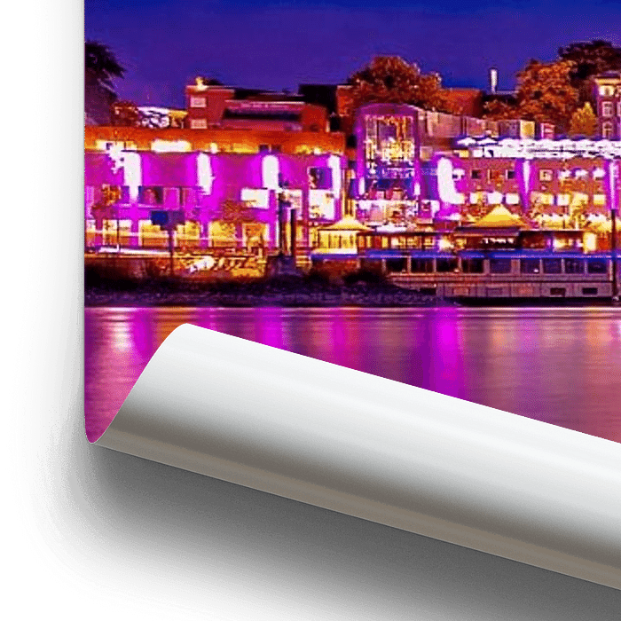 Buy the photo Waalkade Nijmegen by Night - Panorama by Nicky Kapel on canvas, ArtFrame, poster and wallpaper, printed on demand in high quality.
