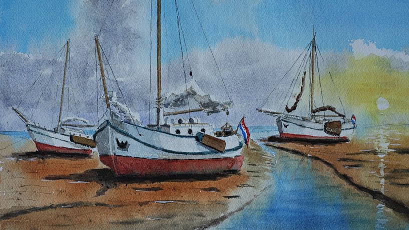 Buy this painting Waiting for high tide by Bert Groenhagen as a reproduction on canvas, ArtFrame, poster and wallpaper, printed on demand in high quality.