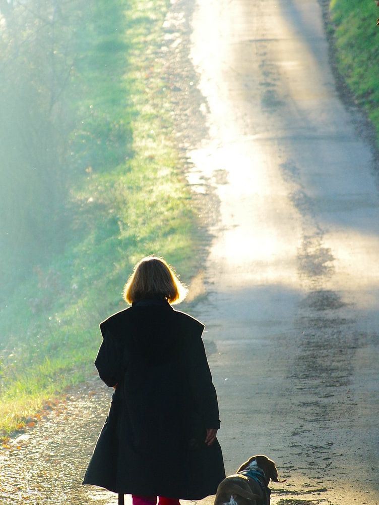 On a country road in the Italian region of Umbria, I photographed this woman walking her bracco italiano. The autumn colours and the backlight with long shadows give this photo a distinct atmosphere.