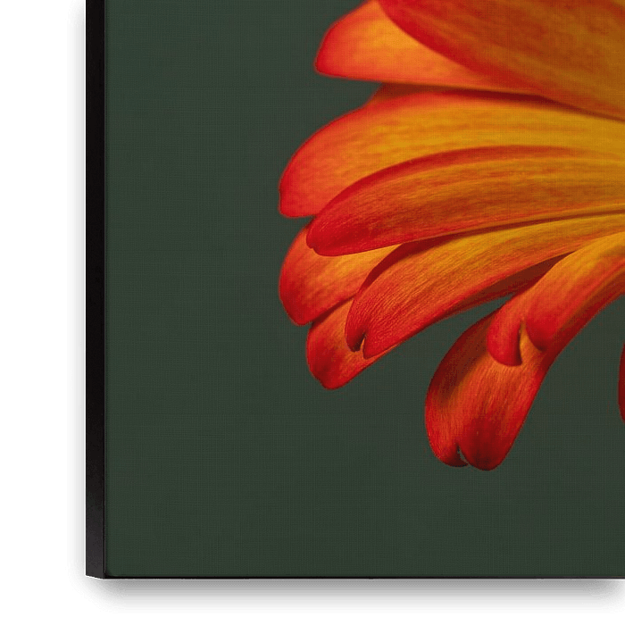 Buy this flower art Warm colours: The sunny Gerbera by Marjolijn van den Berg on canvas, ArtFrame, poster and wallpaper, printed on demand in high quality.