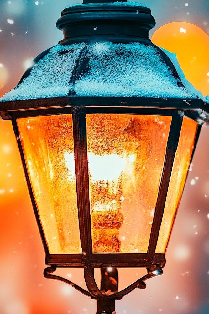 A warmly glowing lantern lights up the wintry scene, surrounded by soft snowflakes and shimmering lights. This nostalgic depiction exudes an inviting atmosphere that is perfect for the living room. Here, it invites you to linger and dream while winter quietly casts its spell outside.