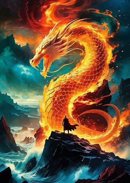 Buy this digital art artwork Warrior Against Flame Dragon by MIROKKU as a reproduction on canvas, ArtFrame, poster and wallpaper, printed on demand in high quality.