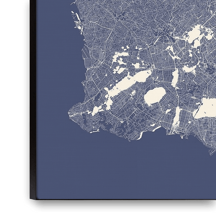 Buy this abstract artwork Water chart of Friesland in royal blue by Maps Are Art on canvas, ArtFrame, poster and wallpaper, printed on demand in high quality.