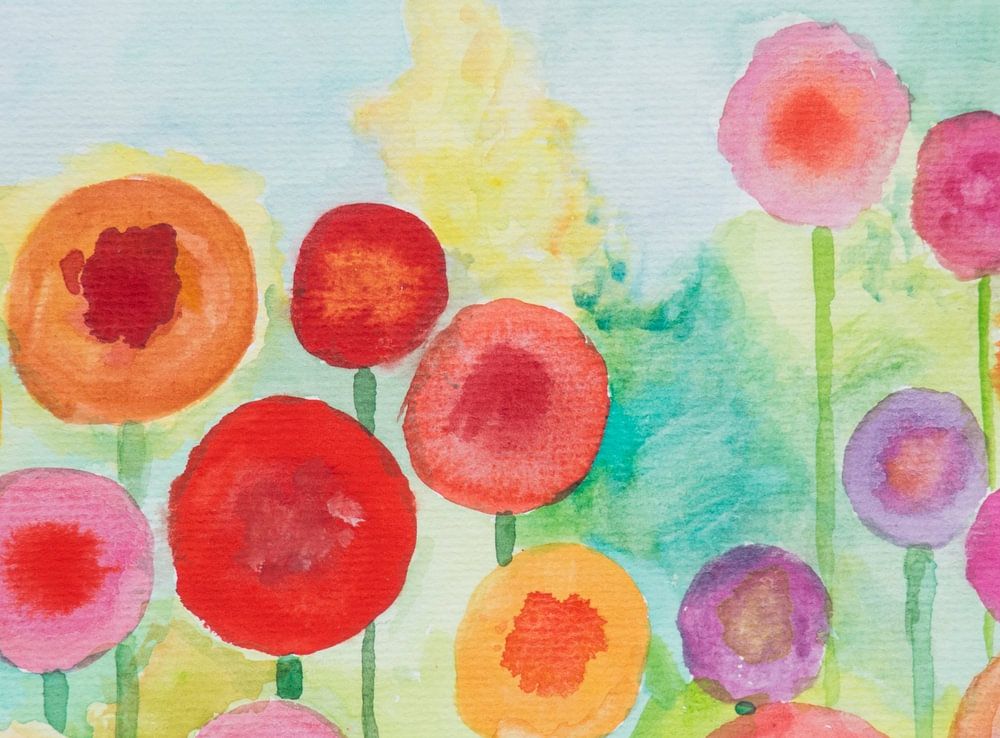 A garden full of brightly coloured summer flowers. That is what you see on this bright watercolour. The flowers are somewhat simplistically placed. But it results in a very cheerful and colourful piece of art. I bet this painting will be a real eye-catcher in your interior. And whether that is in an office, a company, a waiting room, a practice or just in your home does not matter.