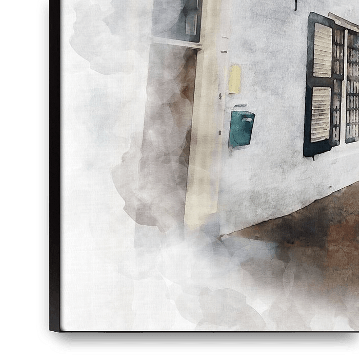 Buy this digital art artwork Watercolour painting of the back of the Stadsschuur in Middelburg, Zeeland by Danny de Klerk as a reproduction on canvas, ArtFrame, poster and wallpaper, printed on demand in high quality.