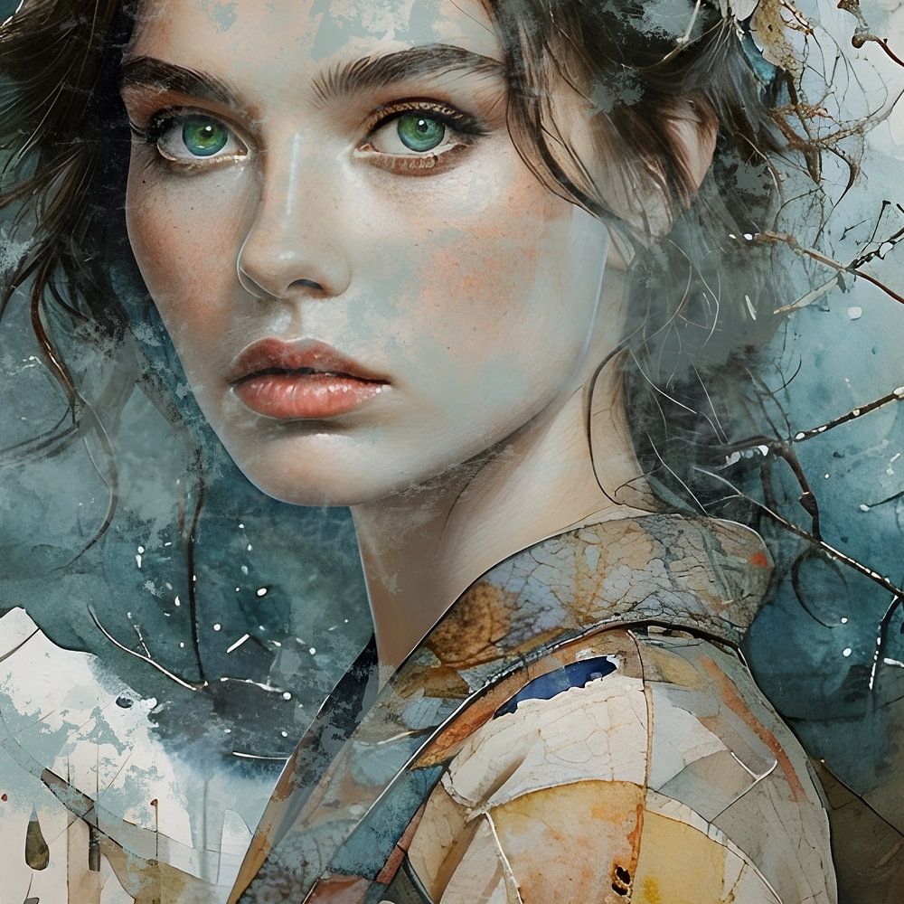 Watercolour portrait of a young woman wearing nature-inspired crown.