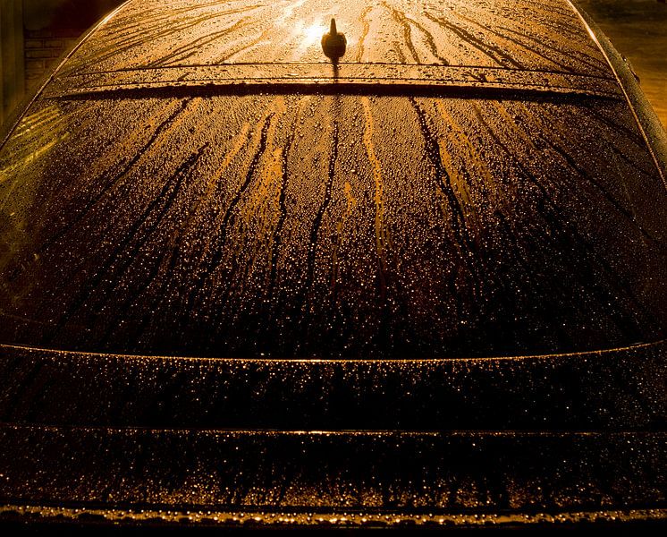 Waterdrops on suface of car by night