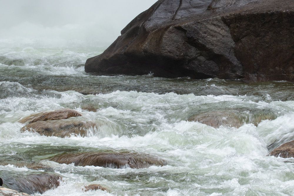 A detail photo of the waterfall near Krimml (Austria). In which a somewhat quieter part of the waterfall can be seen in the foreground and in the background the water falling down several metres.