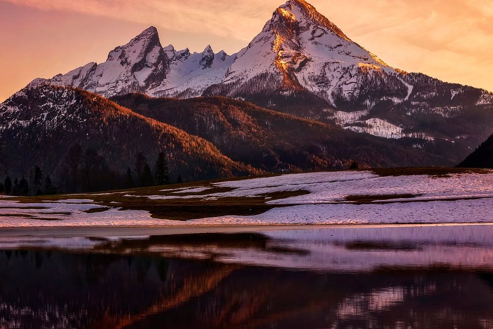 Buy the photo Watzmann reflection in winter by Dieter Meyrl on canvas, ArtFrame, poster and wallpaper, printed on demand in high quality.