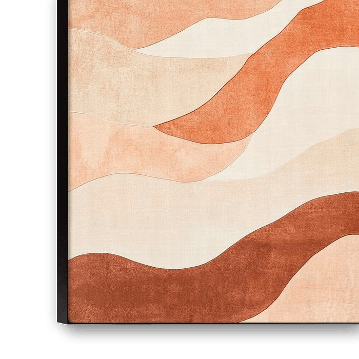 Gentle waves in earthy tones criss-cross the soft canvas, as if enveloping a tranquil landscape. The harmonious colours create a meditative atmosphere that invites you to dream. Perfect for the bedroom, this work of art creates a calming environment that fills the room with warmth and naturalness.