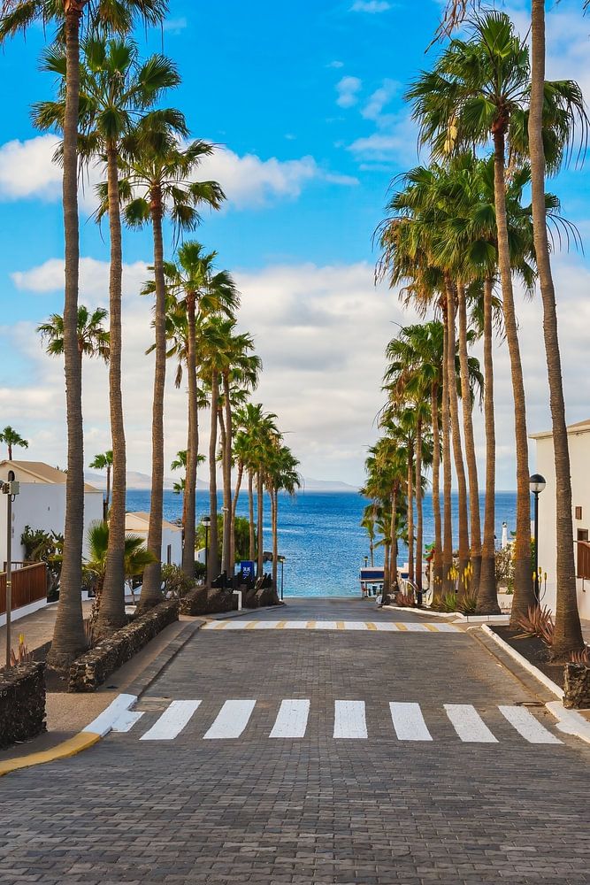 The path to Playa Flamingo beach is an experience in itself, enchanting the senses and calming the mind. This picturesque avenue, lined with tall palm trees, leads you gently down to one of the most beautiful beaches in Lanzarote. As you stroll along under the shady canopy of leaves, you can feel the gentle breeze of the Atlantic and hear the calming sound of the waves gently lapping against the fine sandy beach.
