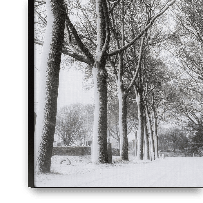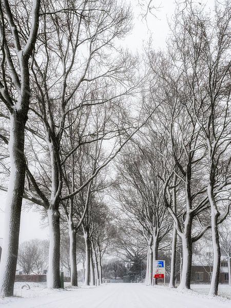This tranquil winter photo shows an impressive row of trees, completely covered in frost and snow, along a rural path in the Land van Cuijk near Beers (North Brabant). The soft white and grey tones give the image an almost dreamy, minimalist feel. The light mist and subtle winter light enhance the sense of stillness and…