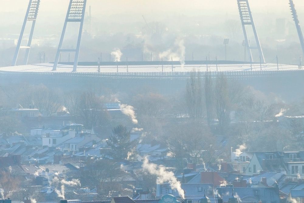 Weser Stadium and Bremen Quarter in Winter with Hoarfrost, , Bremen, Germany