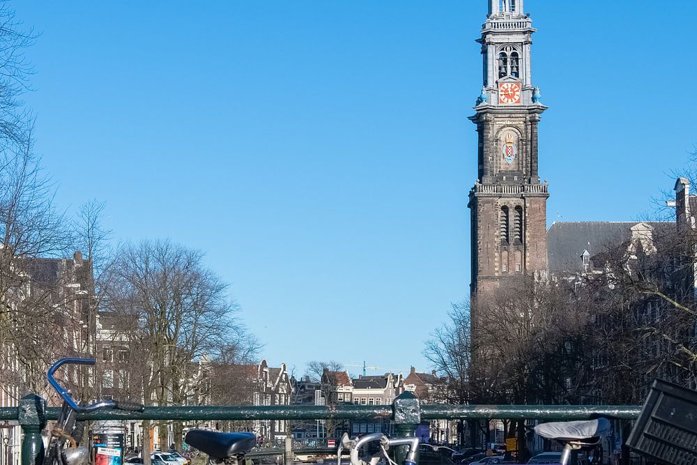 The famous Westertoren of the eponymous church. The tower stands next to the Anne Frank House on the Prinsengracht in Amsterdam.